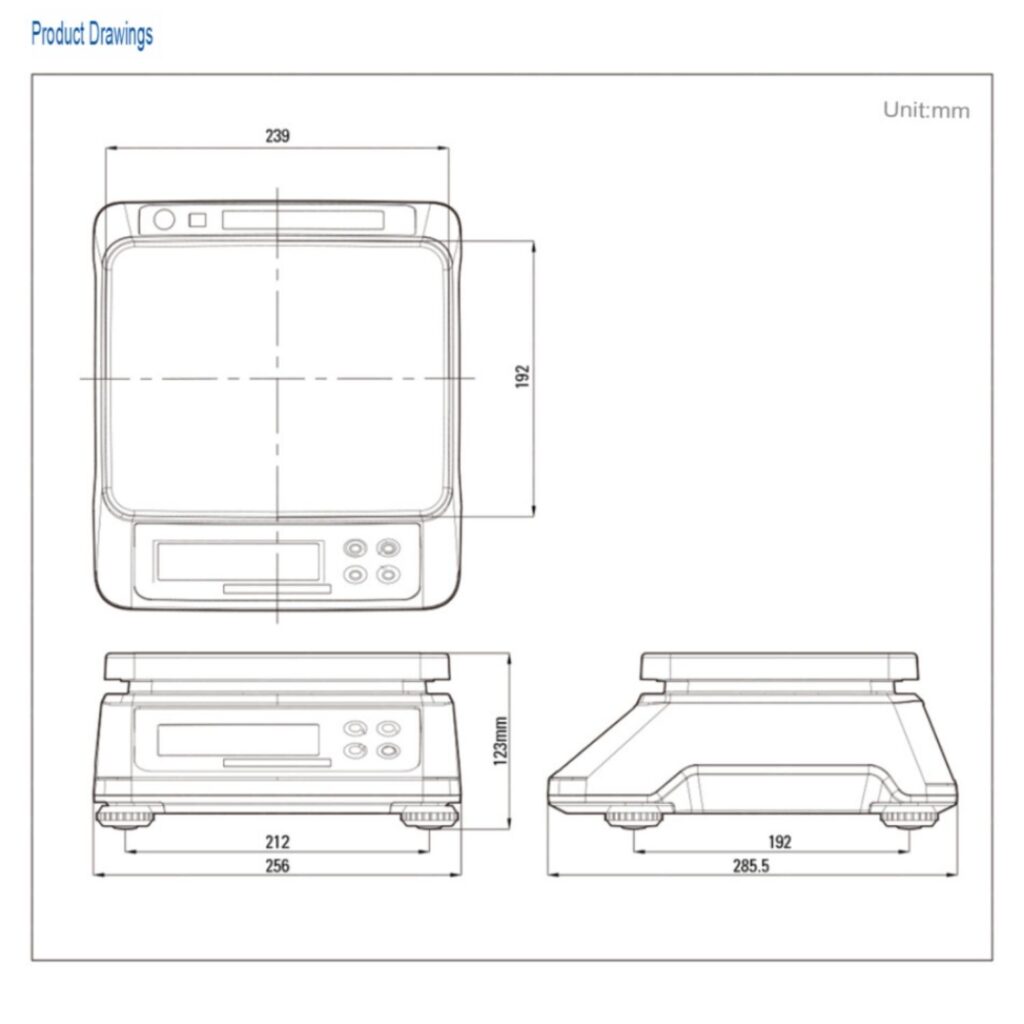 Stainless Steel Weighing Tray: Hygienic, rust-resistant platform (239 x 192 mm) – ideal for food, parcels, and retail items.